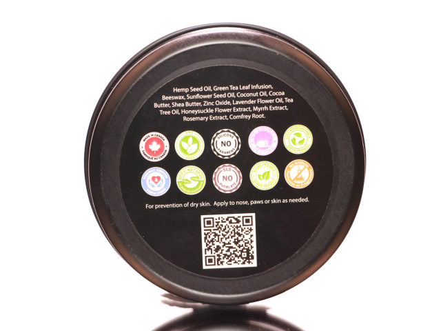 Bestiamo So Soothing Paw, Nose & Skin Balm contains Organic Hemp Seed Oil and Honeysuckle Extract.