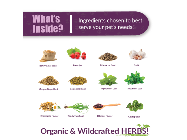 “Proprietary Blend of (Barley Grass Seeds 1,3,4, Couchgrass Root 1,3,4, Catnip Leaf 1,3,4) 43 mg”